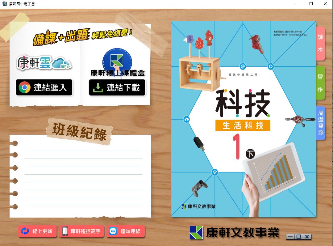 111學年下學期 國中 康軒版 生活科技電子書 1年級(含課本、習作含解答、教學資源)教學光碟