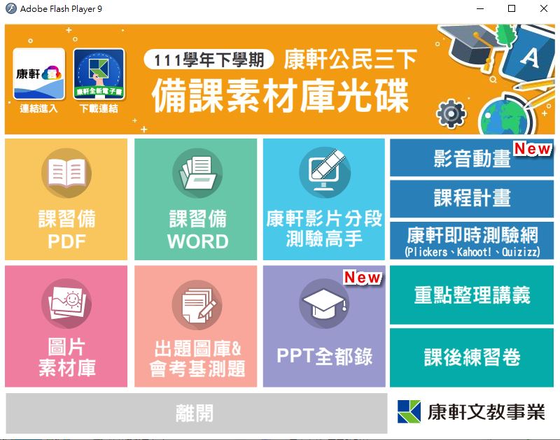 111學年下學期 國中 康軒版 公民備課資料庫 3年級(含課本、卷類資源、備課用書、習作含解答、教學輔助資源)教學光碟