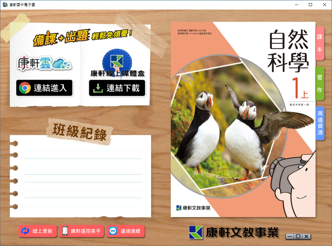 112學年上學期 國中 康軒版 自然電子書 1年級(含課本、活動紀錄簿含解答、教學資源)教學光碟