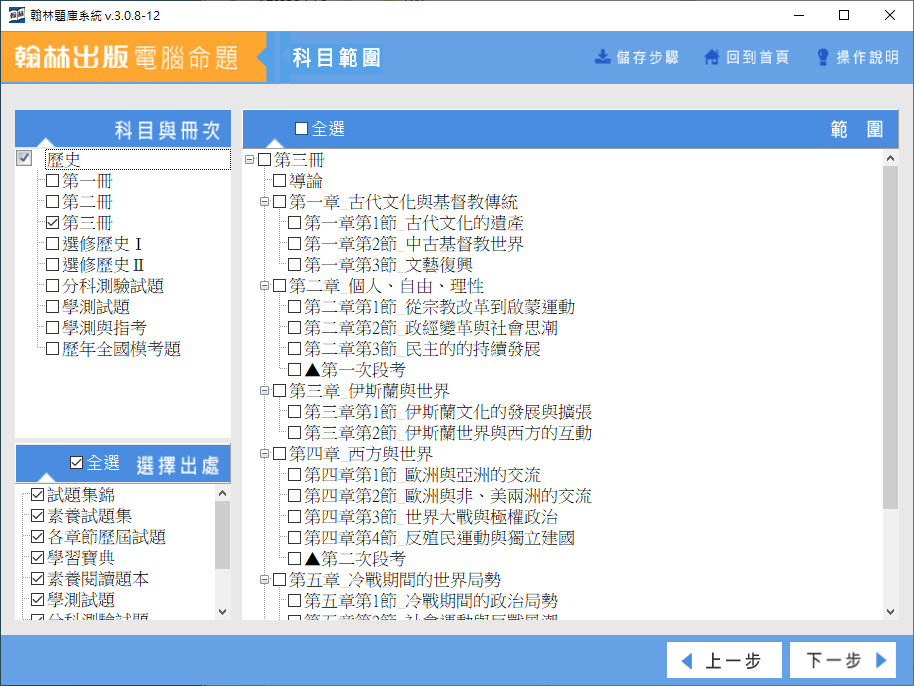 112學年上學期 高中命題光碟 翰林版 歷史科(一、二、三、選修I、選修II、分科測驗試題、學測試題、學測與指考、歷年全國模考題)(108課綱) 題庫光碟