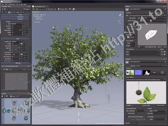 Speedtree是一款專門的三維樹木建模軟體,支持大片的樹木的快速建立和渲染,而且它