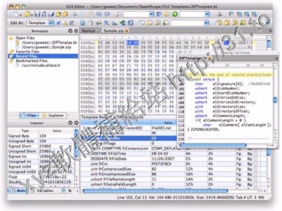 • Sweetscape Software 010 Editor v5.0 MACOSX 英文正式版(十六進位文件編輯器軟體)