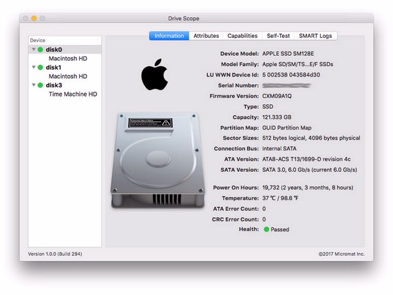 Drive Scope Mac破解版能夠針對驅動器進行自檢,確保能夠使用,還有更多詳細數據明白的