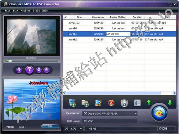 Joboshare MPEG to DVD Converter是一款強大的DVD視頻製作工具,可以將MPEG, M2V, MP4,