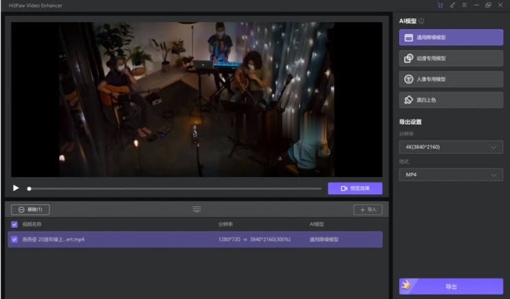 HitPaw Video Enhancer是一款功能強大的影片修復軟體,又名牛學長影片修復工具,提供強大的人工智慧演算法,無損放大以及修復各種模糊的影片,操作簡單,修復效果好,將各種格式的影片輕鬆變得清晰,支援批量增強影片,只需要上傳原始影片,然後選擇合適的AI模型,分別是通用降噪模型、動畫模型和人臉模型,針對不同的類型進行設置,然後可以預覽效果,滿意後匯出新的影片即可!